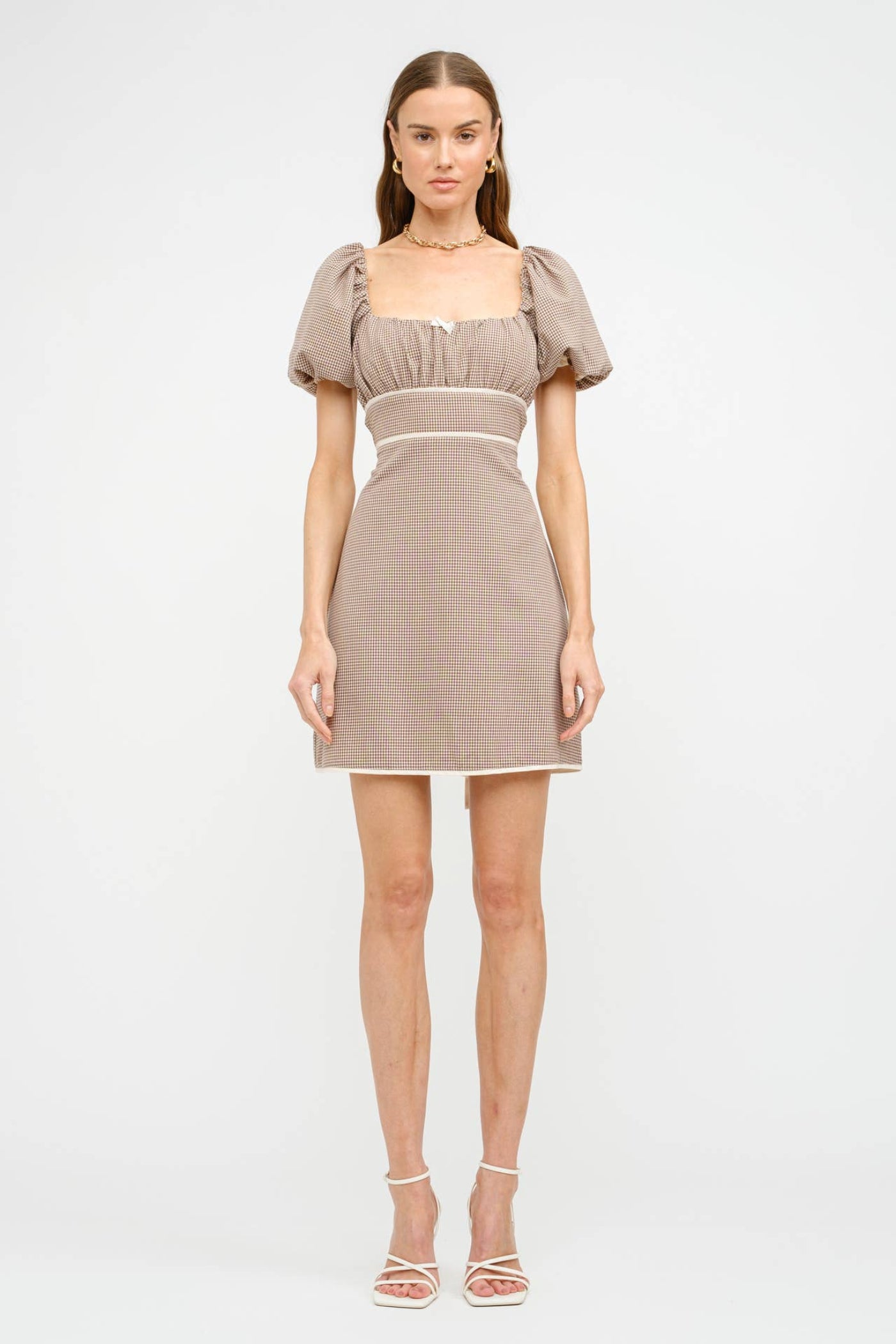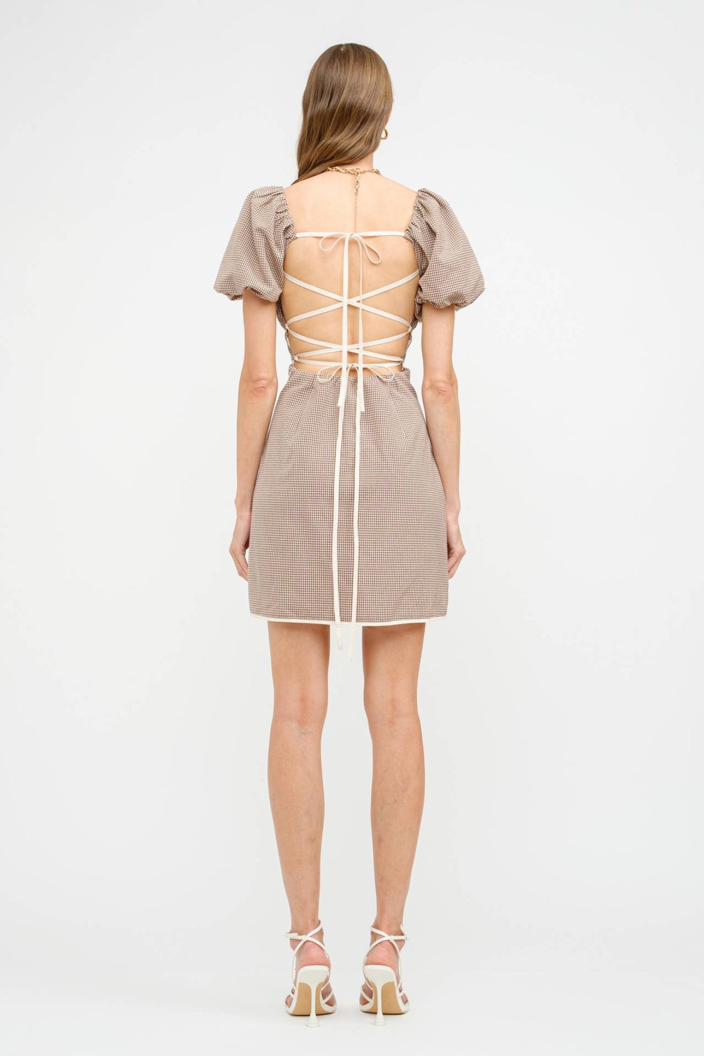 The Mia Gingham Dress is a charming mini dress designed with elegant back ties that add a delicate touch to its silhouette. Crafted to offer both style and comfort, this dress is ideal for warm days or layered looks. Its timeless gingham pattern pairs effortlessly with various accessories, making it a versatile addition to your wardrobe.