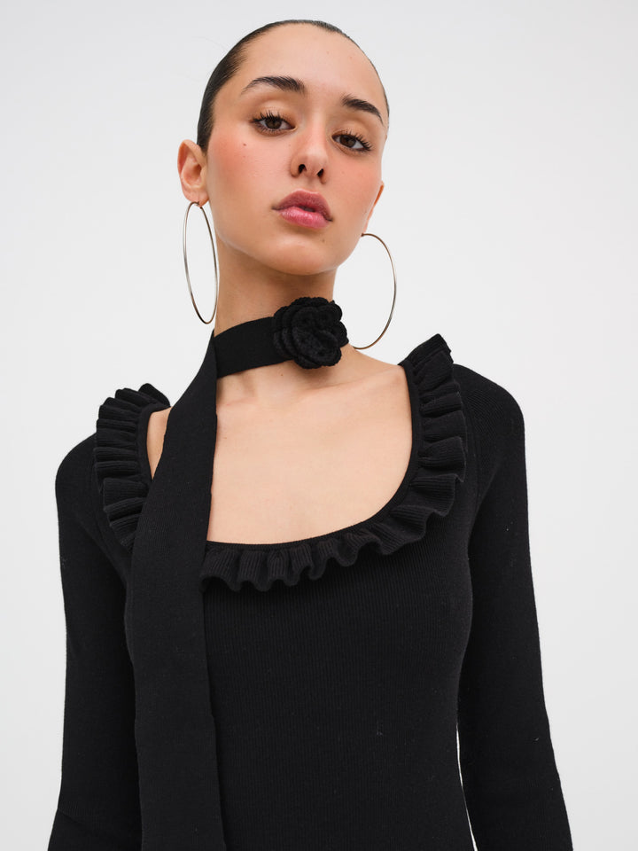 Self: 80% viscose, 20% PBT. Contrast: 90% nylon, 10% spandex.
