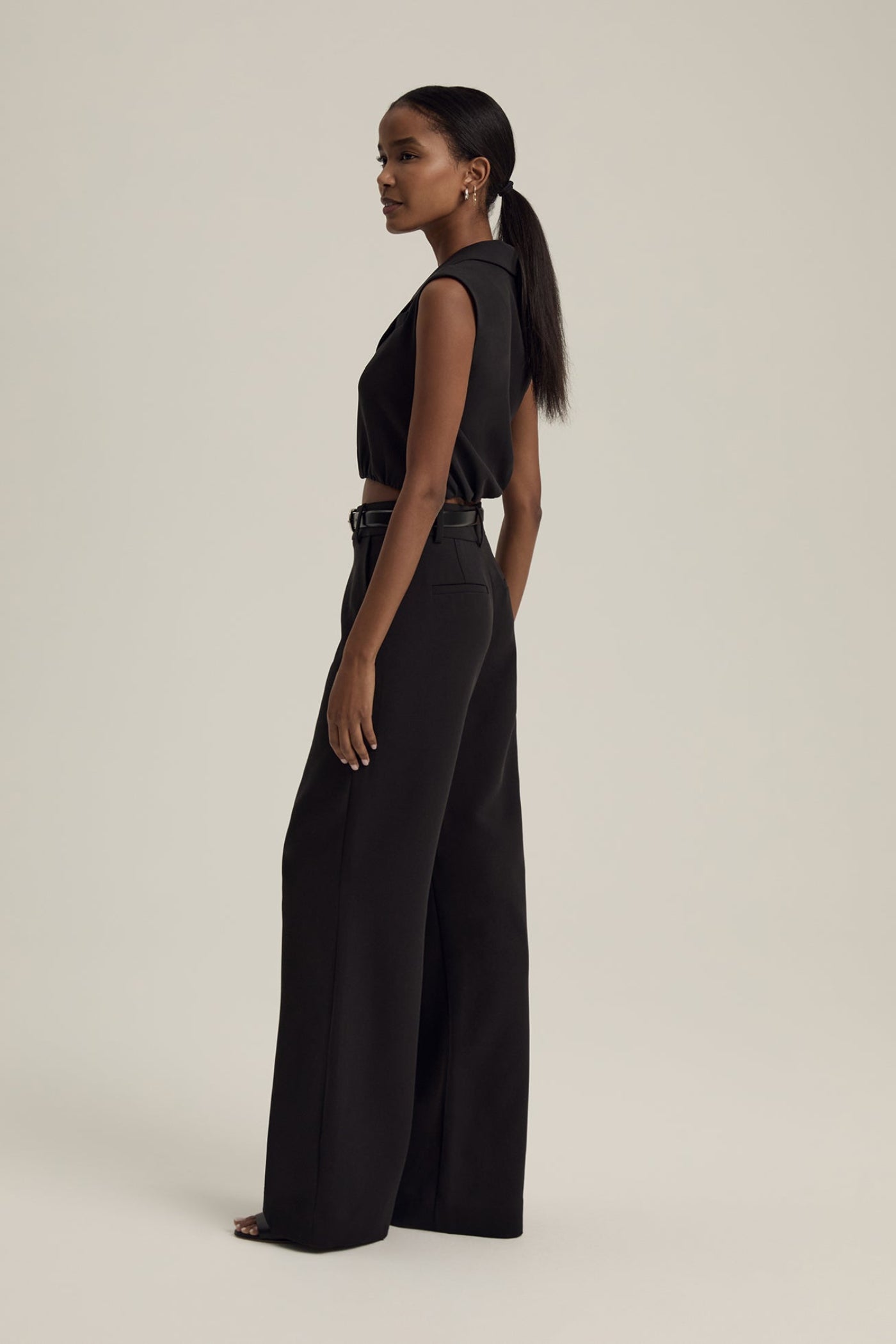 The Audrey Vest debuts for spring in an easy-to-wear structured suiting twill. It features a relaxed, slightly cropped fit and is styled with self-covered buttons and a notched lapel.