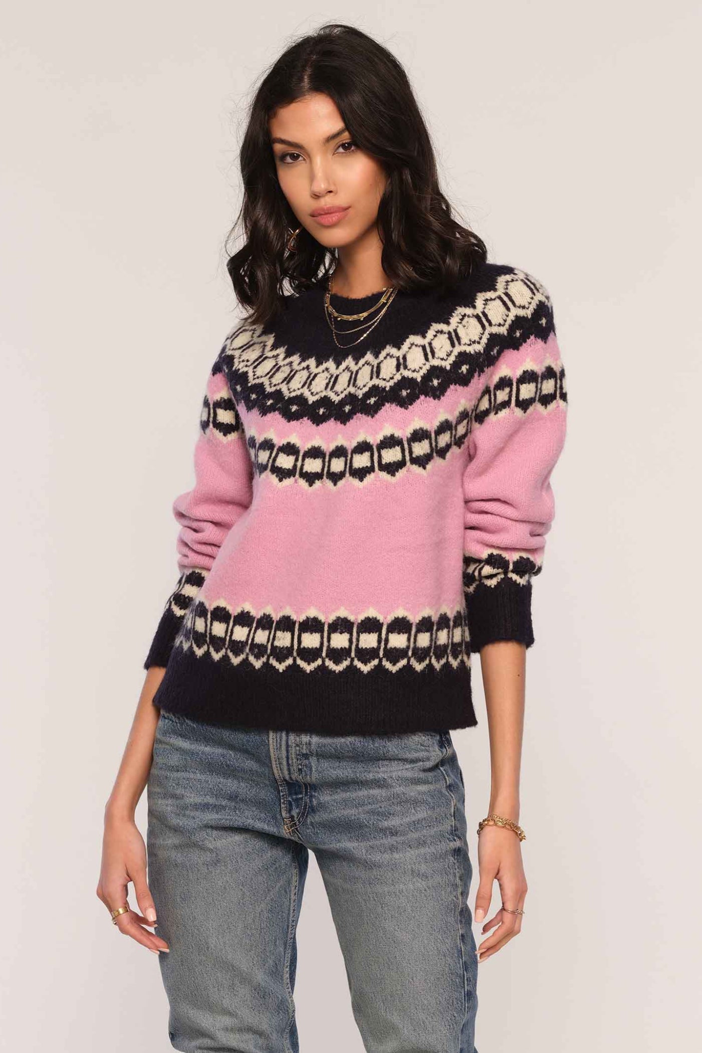 Introducing the most perfect holiday sweater, the Edith Sweater. Featuring a beautiful jacquard pattern knit around the neck, cuff, and hem. It has a relaxed fit for everyday wear.