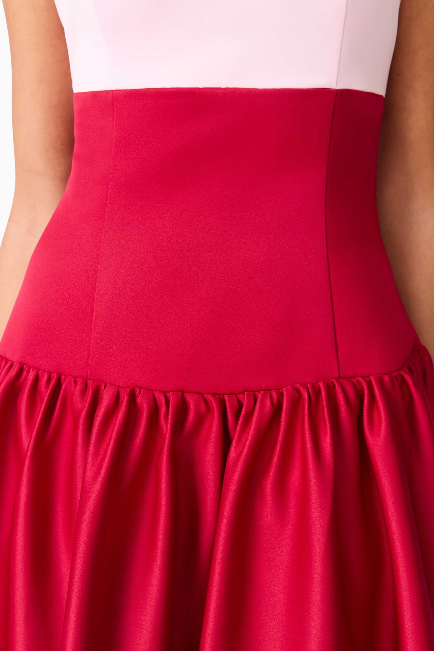 The June Gown captures a sense of refined romance through its elegant structure and luxurious finish. Crafted from duchess satin fabrication, this gown offers a smooth, lustrous texture with a sculptural drape that enhances its dramatic silhouette.