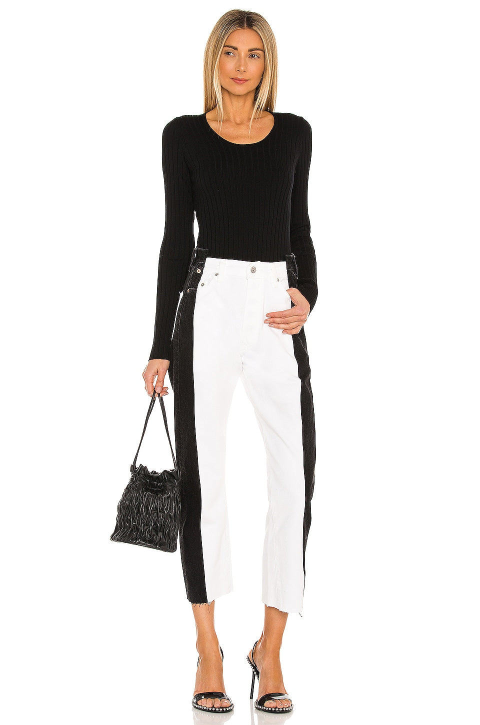 80% rayon, 20% nylon. Bottom snap button closure. Stretch fit. Ribbed fabric.