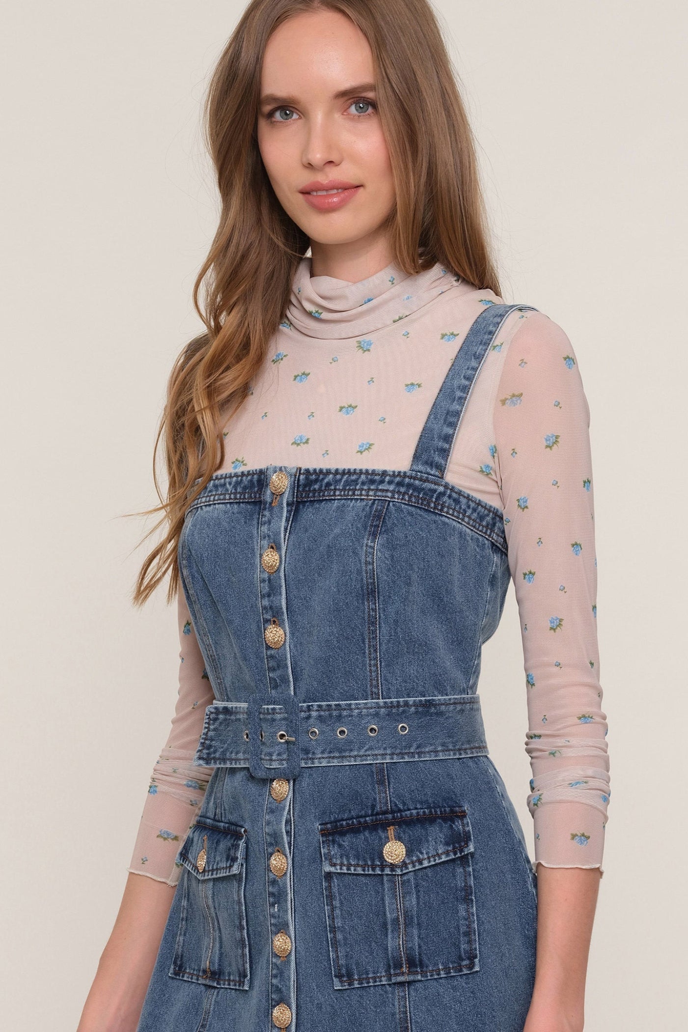 The Willem Dress is made from cotton denim. It features a self-belt, square neck, and patch pockets. We love it layered over a turtleneck.